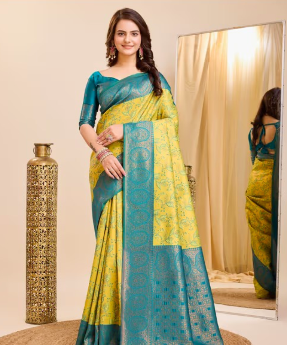 Experience the timeless elegance of Banarasi silk enhanced with intricate waving work. Perfect for traditional ceremonies and festive occasions, this saree brings regal charm to your wardrobe.