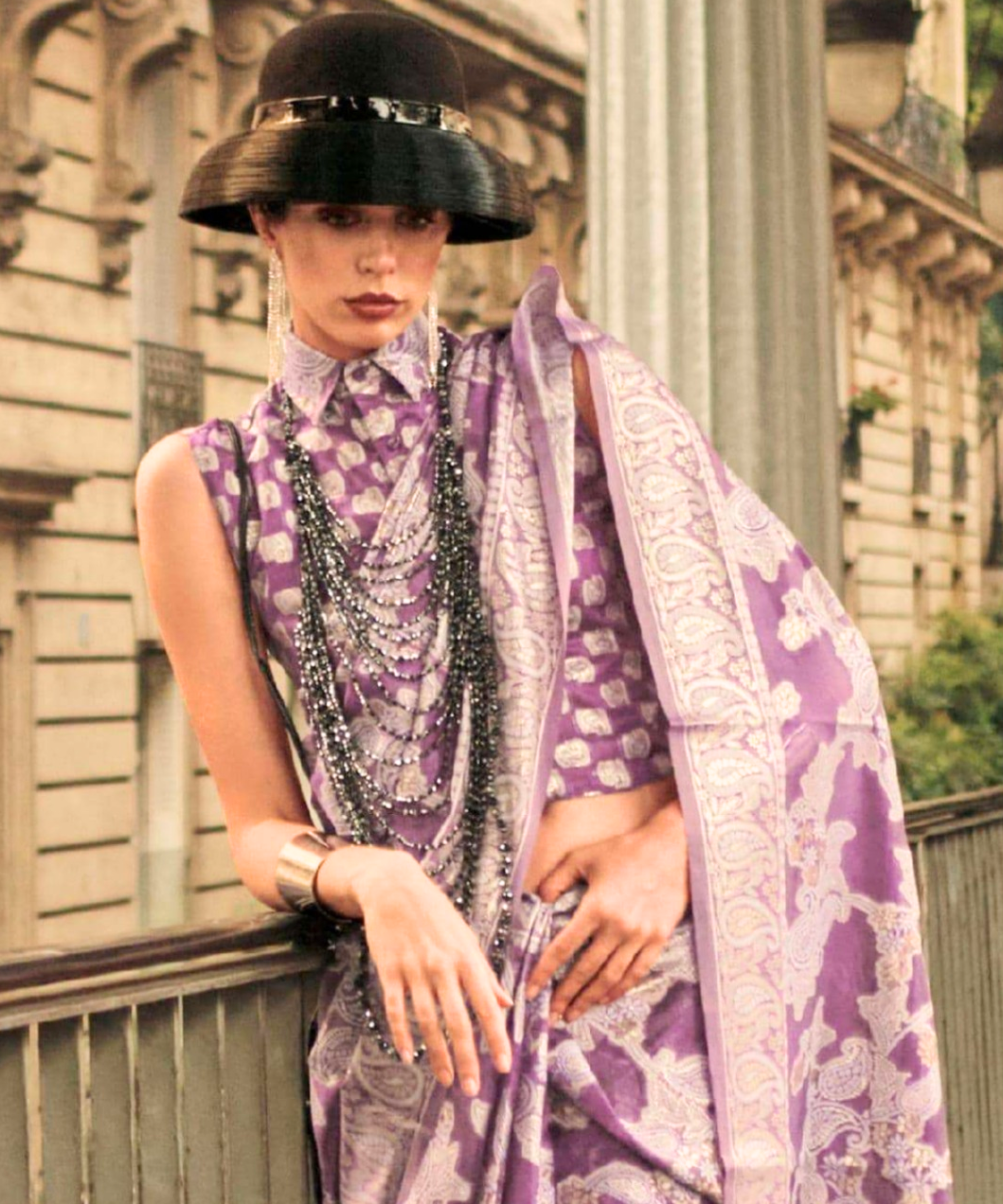 Experience the delicate charm of our Muga-inspired soft organza saree, adorned with intricate thread work. This lightweight saree drapes gracefully, making it an ideal choice for festive occasions and elegant gatherings.